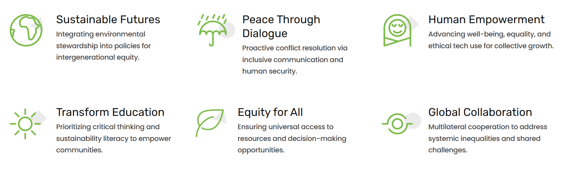 Our vision is to build a world where education, peace, sustainability, and human dignity are the cornerstones of society. We envision a future free of conflict, inequality, and environmental destruction, where every individual has access to resources, opportunities, and support systems that enable them to thrive.